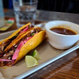 Finally able to try this place after walking past it so many times since they opened a year ago (maybe more?). Came to meet with a friend and there were plenty of seats indoors but if it's a good day, you can also sit outside. But slight warning, you'll have to deal with the noise from the N Judah and also the brisk winds. Service was really quick. We got seated right when we arrived and our orders came in about 10 minutes from ordering. We ordered the Chef Juans Ceviche that came with taro chips and I ordered the Quesabirria for my entree. The ceviche was delicious. I'm not sure if I enjoy the taro chips (something about the texture) but the ceviche itself was flavorful and it wasn't too spicy. The Quesabirria was a hefty meal. The shell was crispy and the filling was tender and retained its moisture in the cooking process. Would definitely come back with a larger group to try some of their other options.
