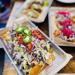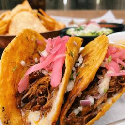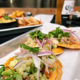 Big place .,,lots of tequila ! Big selection of drinks too. We all had tacos 3 per Order, all around $ 15 for lunch. I thought the shrimp were the best looking and they tasted great. The Carnitas and Carne Asada were both pretty good, but on the small side, Our server was prompt and welcoming. The interior is nice and bright , spacious with a huge , big screen on the back wall. The place is very clean, including bathrooms and it would be very easy to spend a few hours over margaritas and appetizers there. There is also plenty of outdoor seating.
